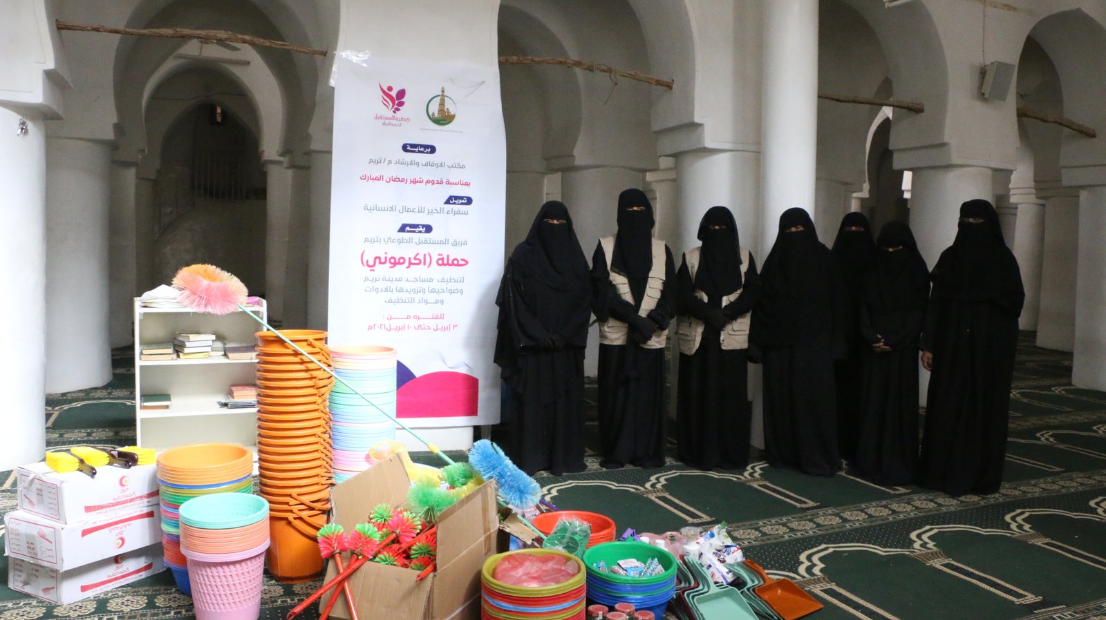 دشنت رئيسة جمعية المستقبل لتنمية المرأة بتريم حضرموت الأستاذة ابتسام مسيعد ورئيس الفريق التطوعي بالجمعية الأستاذة مريم منصور حملة أكرموني لتنظيف المساجد بمدينة تريم وضواحيها.